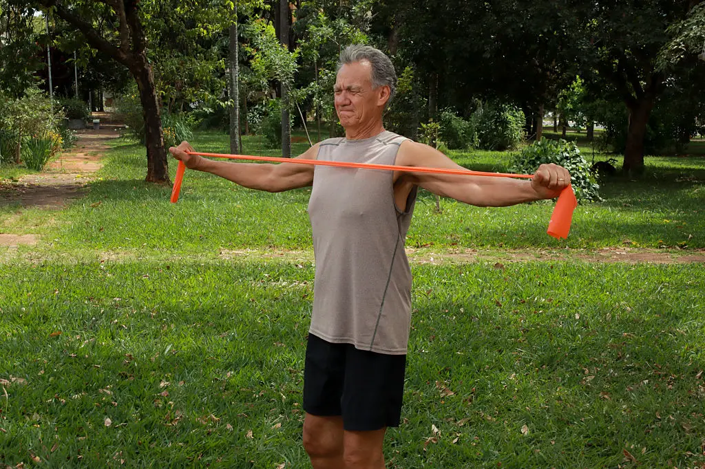 Good posture starts with a strong back, and rows are an easy way to get there—no gym required. Use a resistance band: secure the center under your feet, hold the ends, bend your knees slightly, and hinge forward a little at your hips. Pull both ends back, keeping elbows close, and squeeze your shoulder blades together. If you don’t have a band, a towel held taut between both hands works in a pinch—focus on “pulling apart” as you mimic the motion. Always keep your back long and neck relaxed. Start with slow, small reps and increase the number as you grow more comfortable. Back strength isn’t just for standing tall—it’s also for carrying, reaching, and moving through your day with less effort and more confidence.