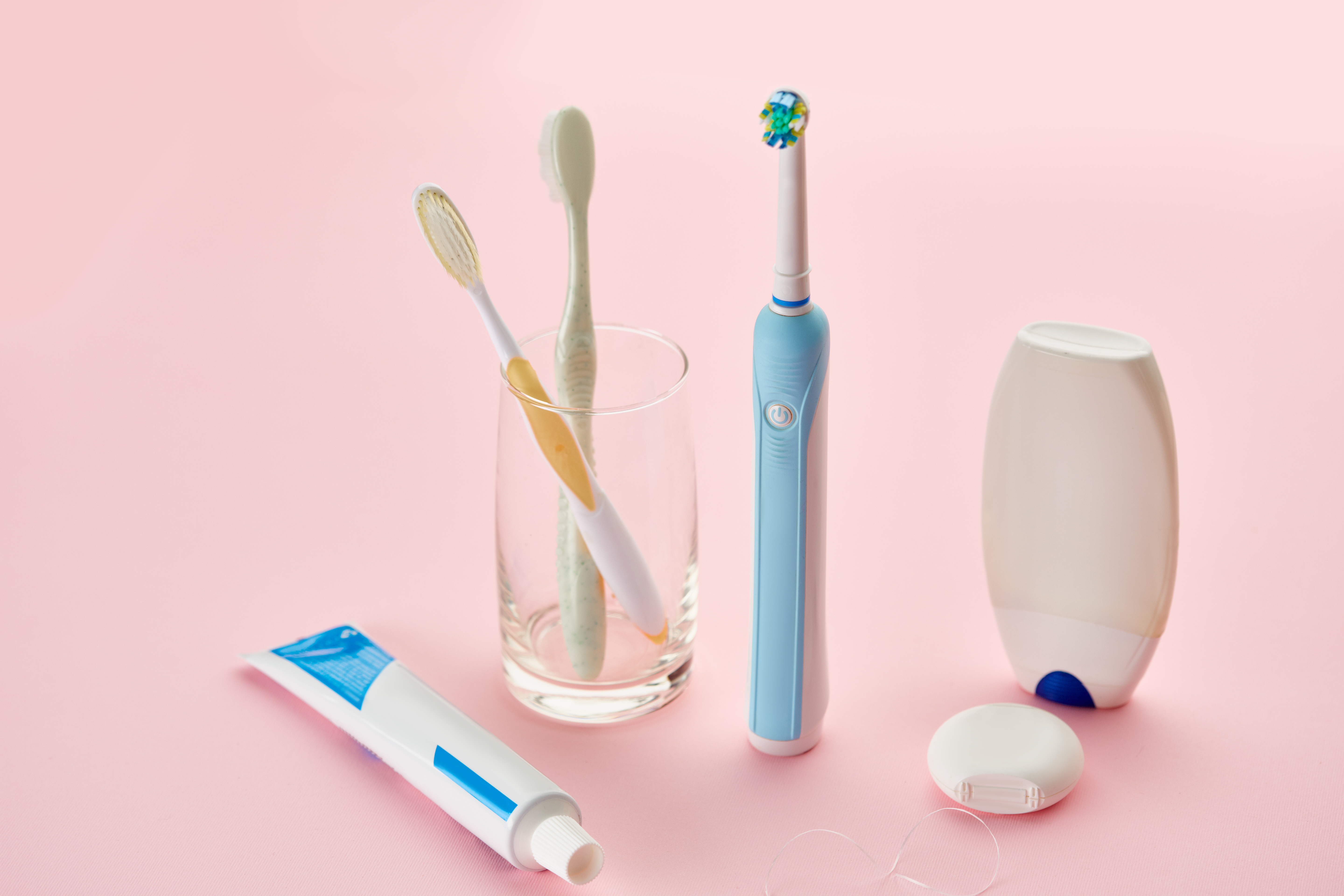 Oral care, toothbrush, toothpaste and dental floss. Photo Credit: Envato @NomadSoul1