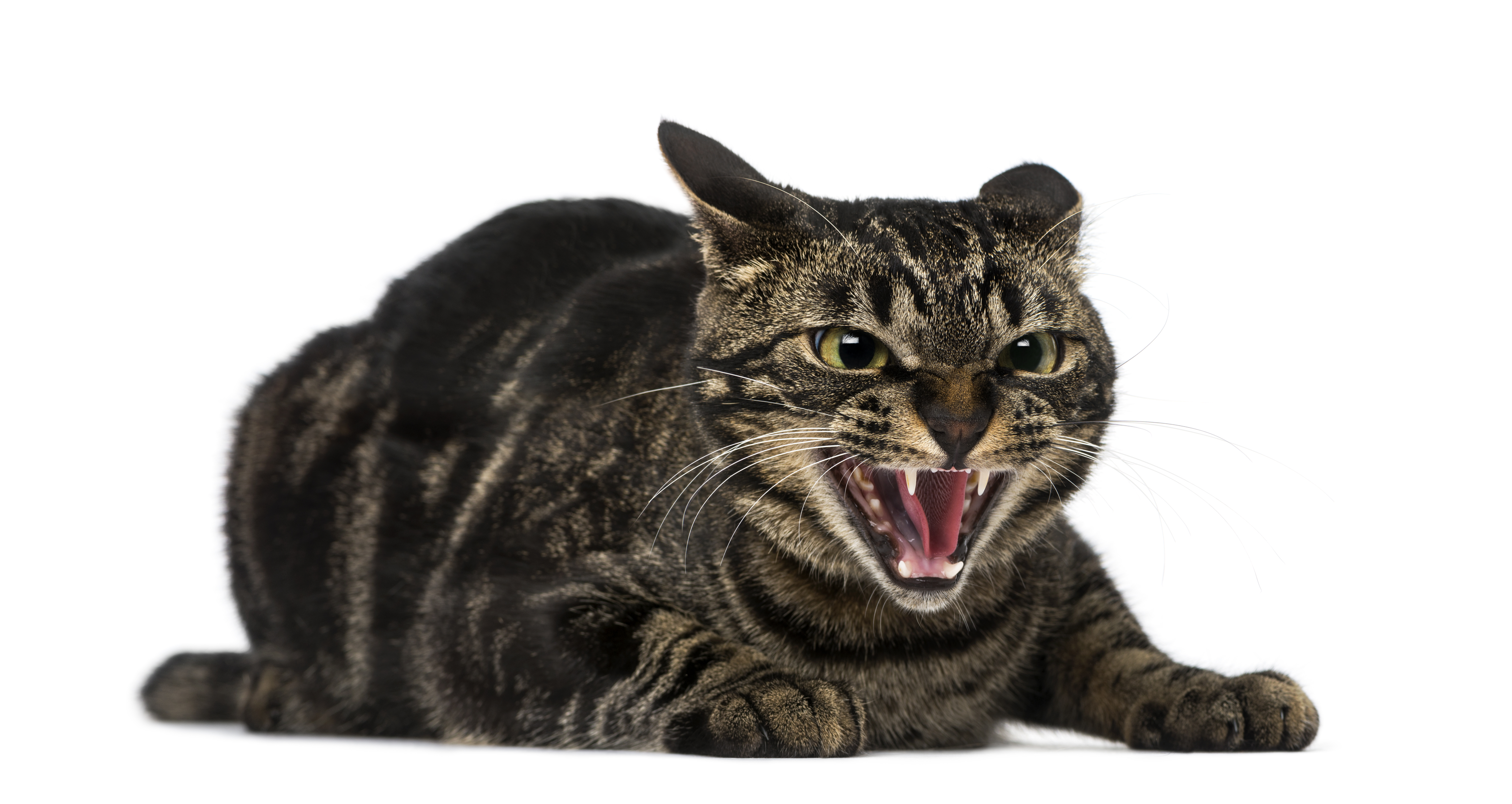 Mixed-breed cat hissing. Photo Credit: Envato @Lifeonwhite
