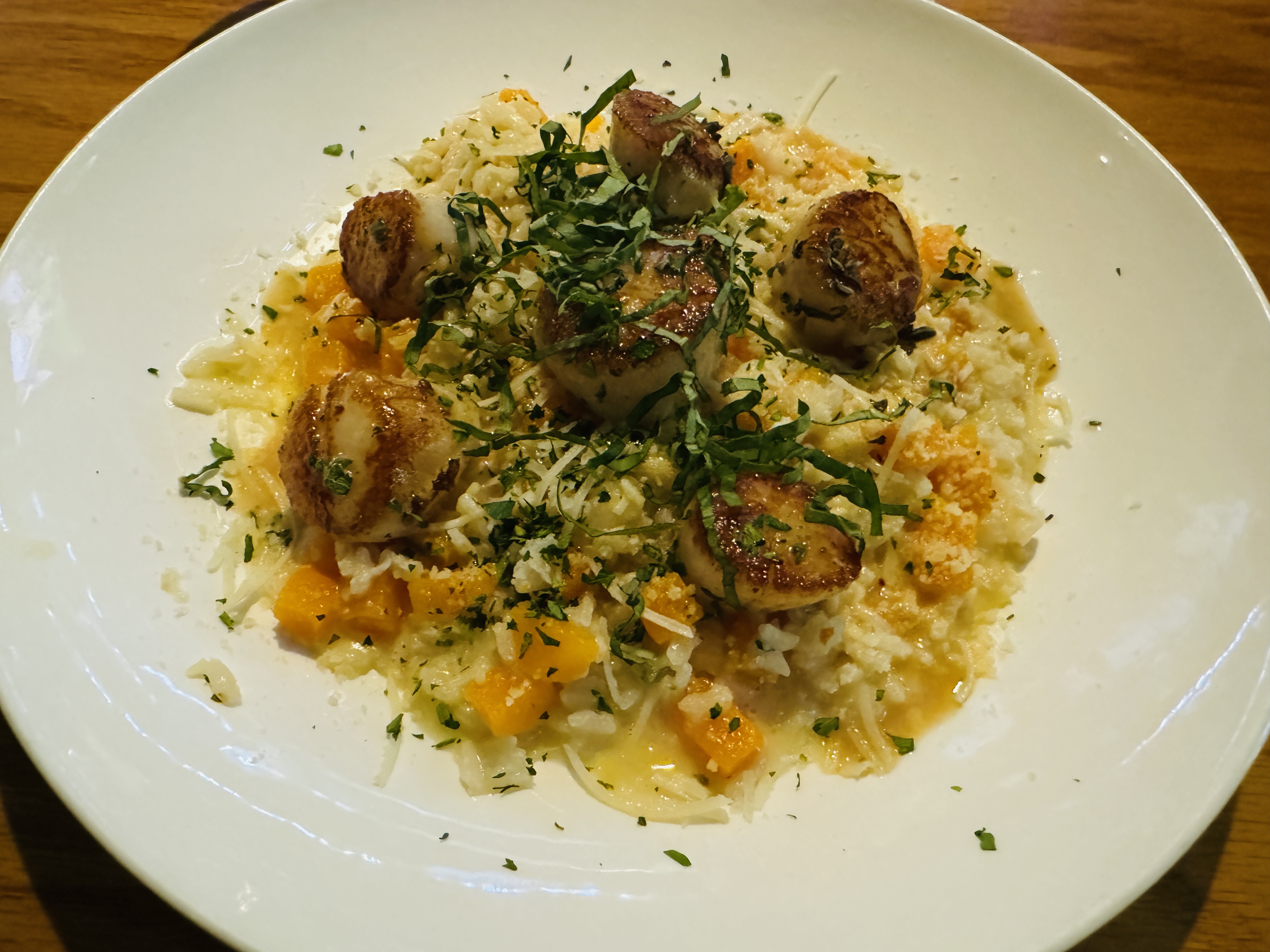 Scallops with butternut squash risotto at Cucina Verona. Photo Credit: Wikimedia Commons @Missvain