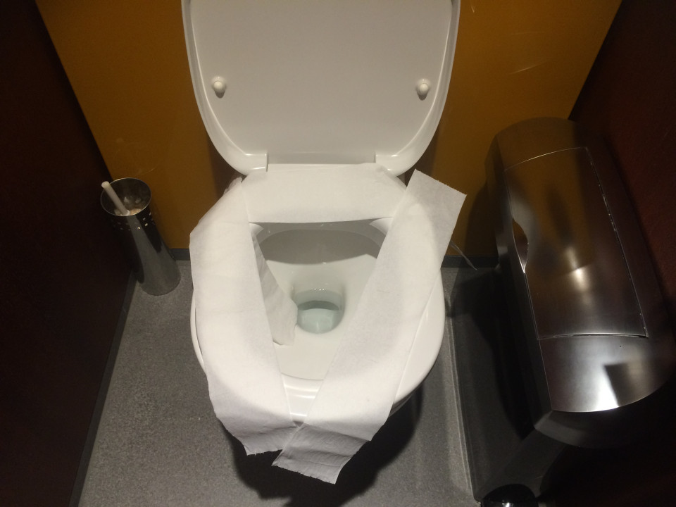 The most obvious advice is to locate a relatively clean public restroom and avoid ones that are filthy. It is not always easy when you have a restroom emergency but as you have at least a few minutes to decide which facility to use, it is a safer bet to use certain types of facilities over others such as hotel, bookstore, restaurant and café restrooms tend to be cleaner than the public toilet in the subway or outdoor toilets. Basically, you want to try to avoid using restrooms that have a high volume of visitors or restrooms that are not frequently attended to. Often, the cleaner restrooms might technically be reserved for customers only, so you need to stride purposefully towards the facility as if you belong there and if you are unsure where the restroom is located, ask politely and confidently.