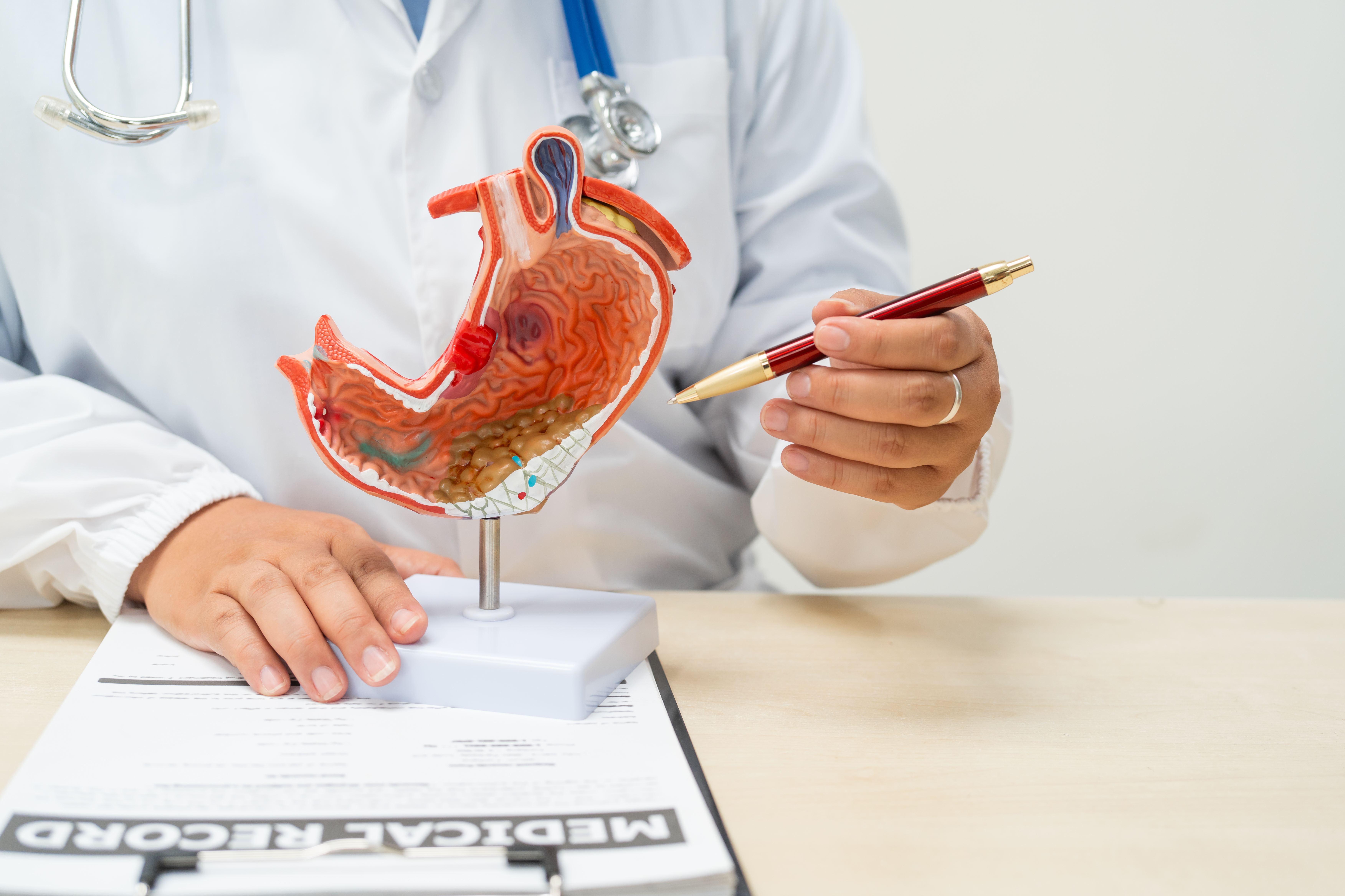 A female doctor a hospital desk discussing digestive disorders such as stomach ulcers,acid reflux. Photo Credit: Envato @nansanh