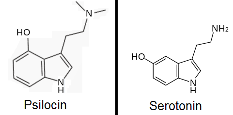 Psilocin vs serotonin. Photo Credit: Wikimedia Commons @Jatlas1