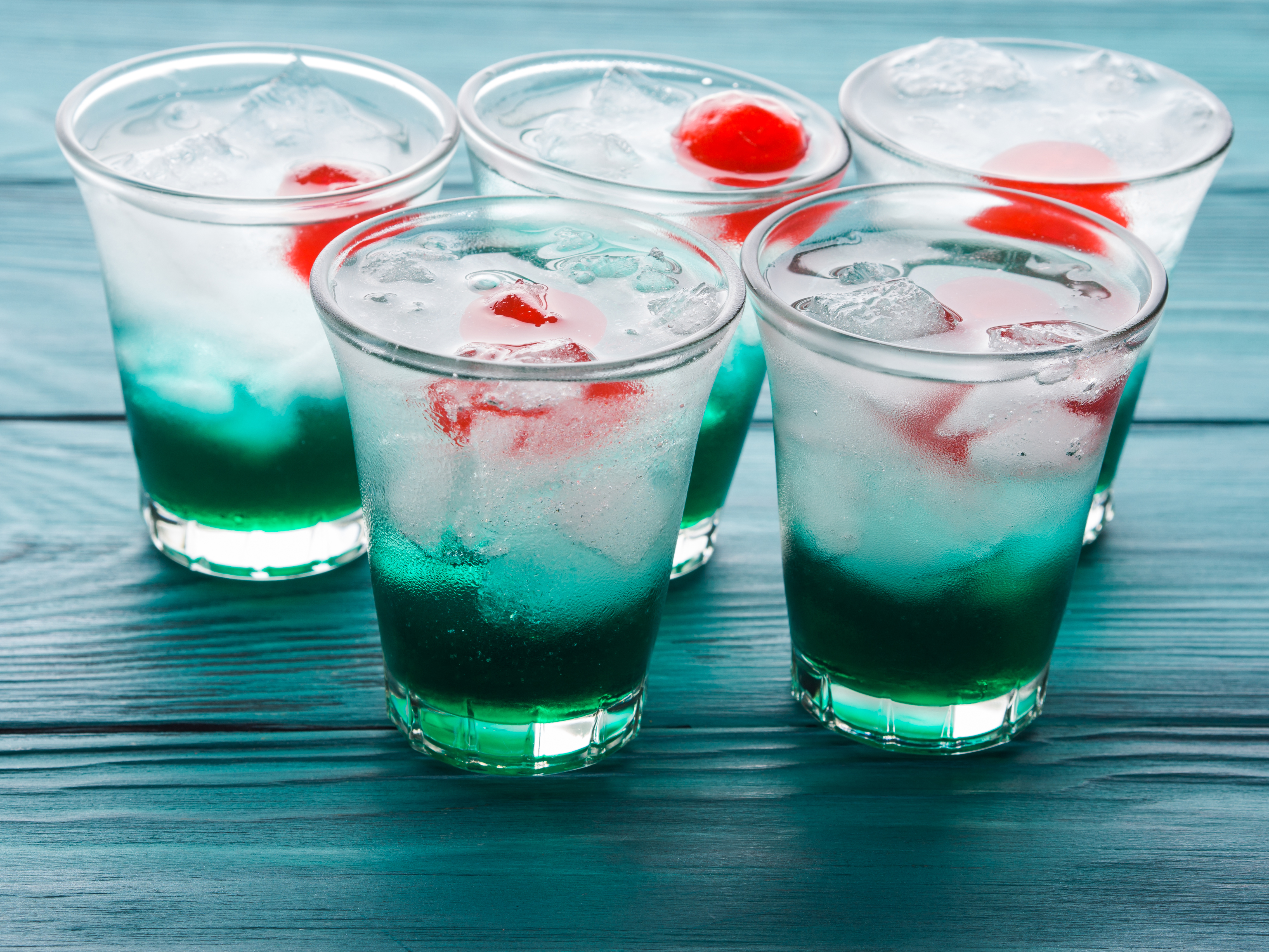 Short alcohol green drinks with cherry. Photo Credit: Envato @tenkende