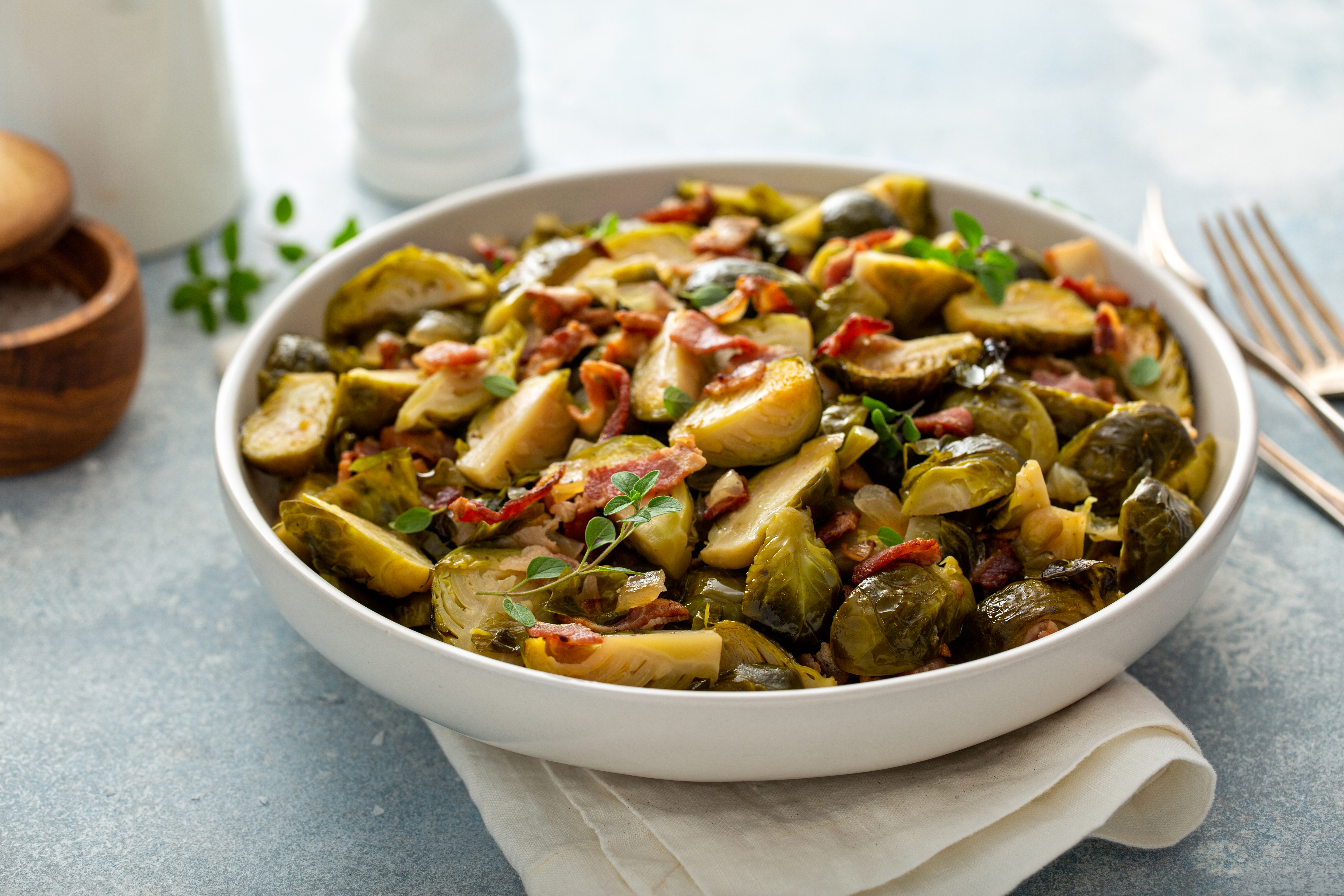 Roasted brussel sprouts with bacon, side dish. Photo Credit: Envato @fahrwasser