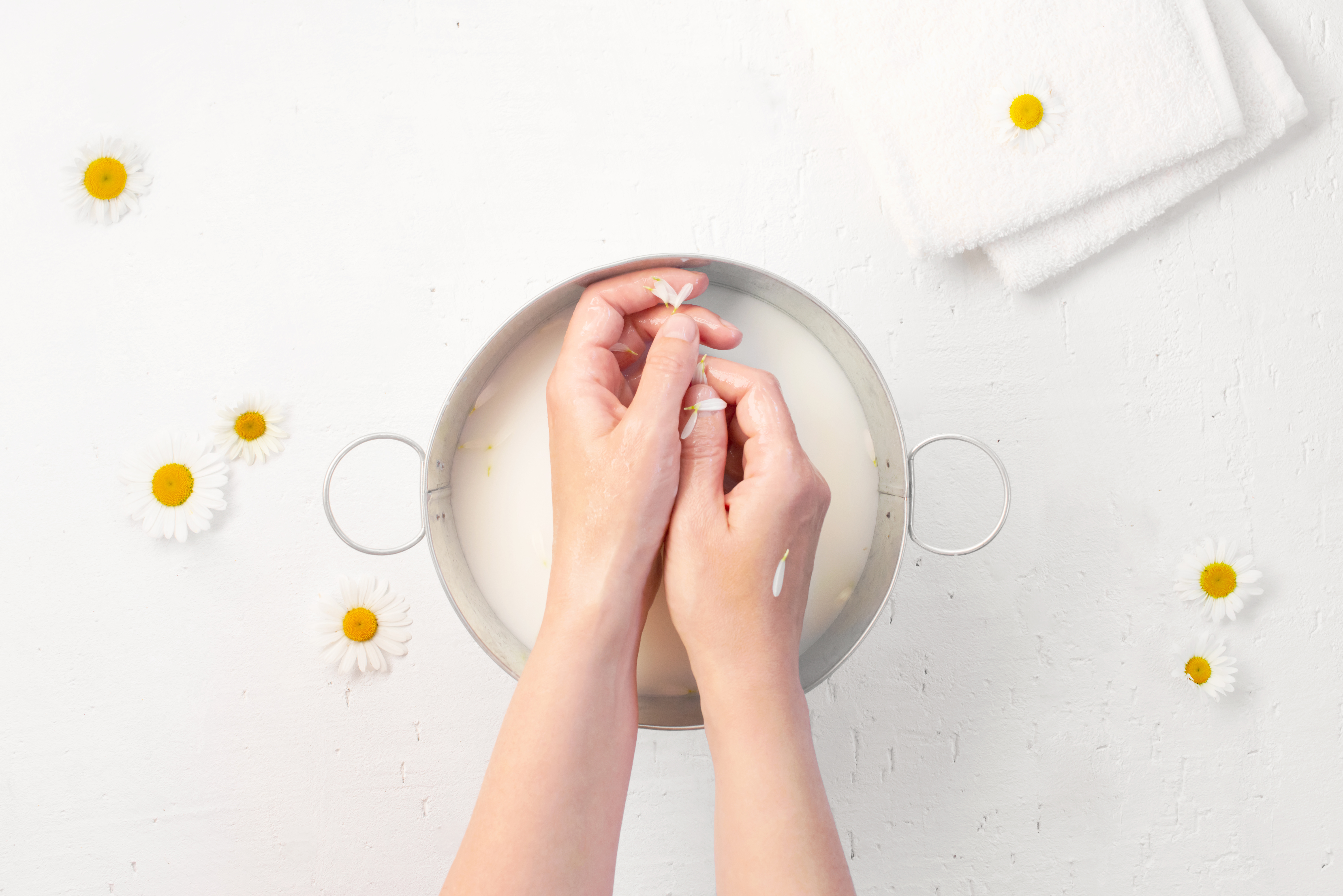Organic Skin Care for Hands with Milk and Chamomile. Photo Credit: Envato @AlinaKho