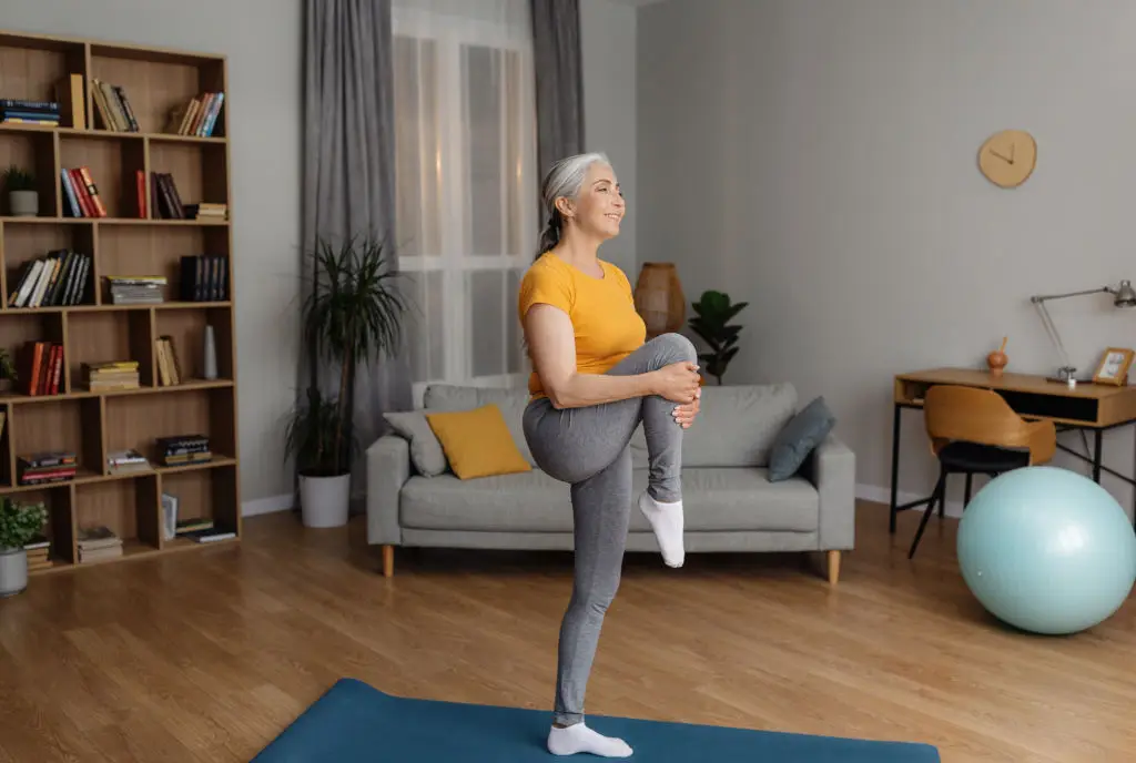 Balance work is especially important as we age and helps reduce fall risk while building confidence for everyday movement. Begin with supported exercises: stand behind a chair and practice shifting weight from one foot to the other, perform heel-to-toe walks across a short distance in your living room, and try single-leg stands with the chair within reach. Hold for 10 to 30 seconds per side, repeating three to five times. To increase difficulty, try closing your eyes briefly or moving the free leg in small circles. If standing is not comfortable, mimic balance by practicing seated core-engagement drills and ankle mobility exercises to build a stable base. Choose non-slip shoes and clear the area of rugs or clutter to reduce hazards. Practice balance drills two to four times a week for short, consistent sessions rather than long, infrequent workouts. These exercises can be done while listening to a podcast or standing by a sunny window with a cozy mat underneath—small, regular practice helps maintain independence and ease in daily life. If you have significant dizziness or neuropathy, check with a clinician before progressing to unsupported drills.